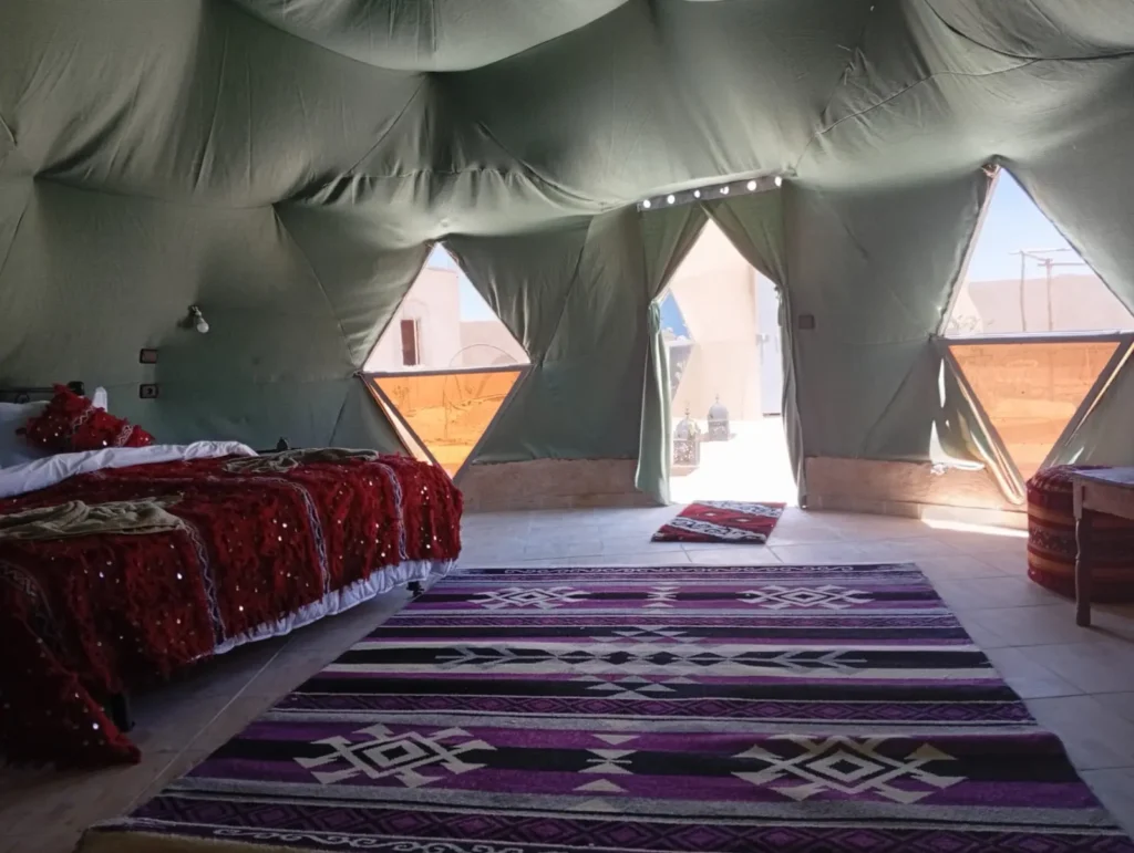 The igloos has 18m2. The tent, provided of 2 windows, allow the natural light to come in, even on those sandy storm days. In case you are afraid of scorpions, these are the best tents for you, due to the mosaic floor that avoid scorpions to hide in the tent of your dreams.